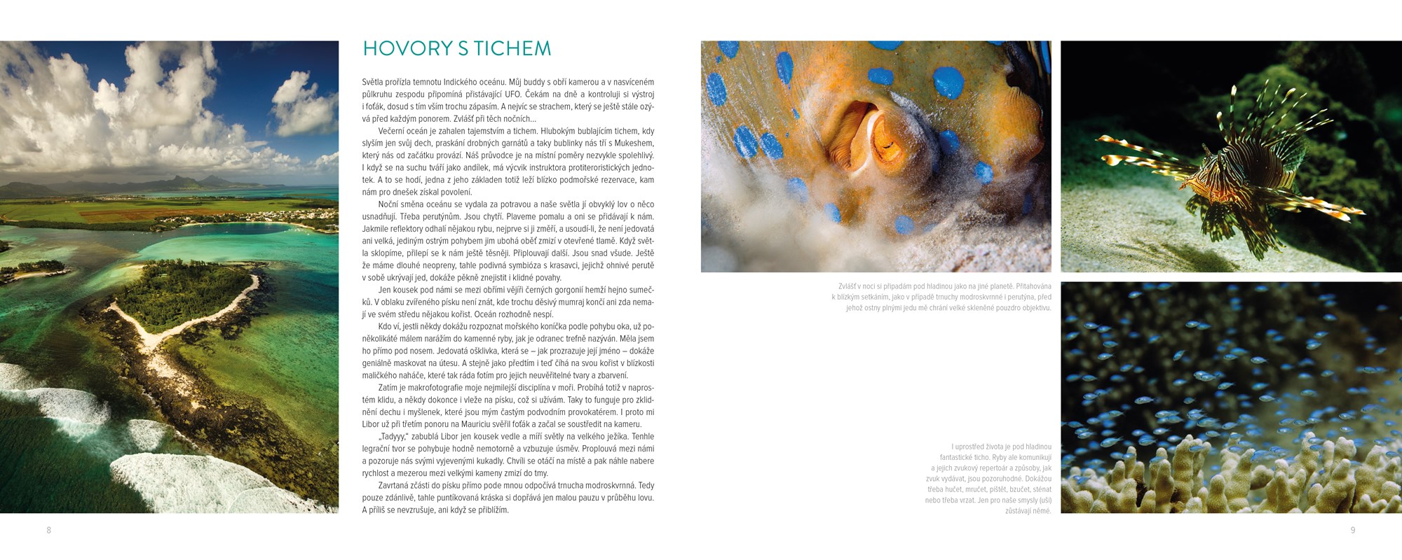 Kniha se vrací zpět k silným příběhům prožitým při natáčení celosvětově oceňované dokumentární série Útěky do přírody. Vede nás k neznámým světům, do tajemných svatyní, k potomkům kanibalů. K přísně střeženému rituálu krokodýlích mužů na Papui Nové Guineji, kam dosud žádné ženě nebyl umožněn přístup. K nečekanému vánočnímu dárku, jímž se stal vlastní korálový útes. K objevování míst, která se mění a někdy i ztrácejí před očima.
