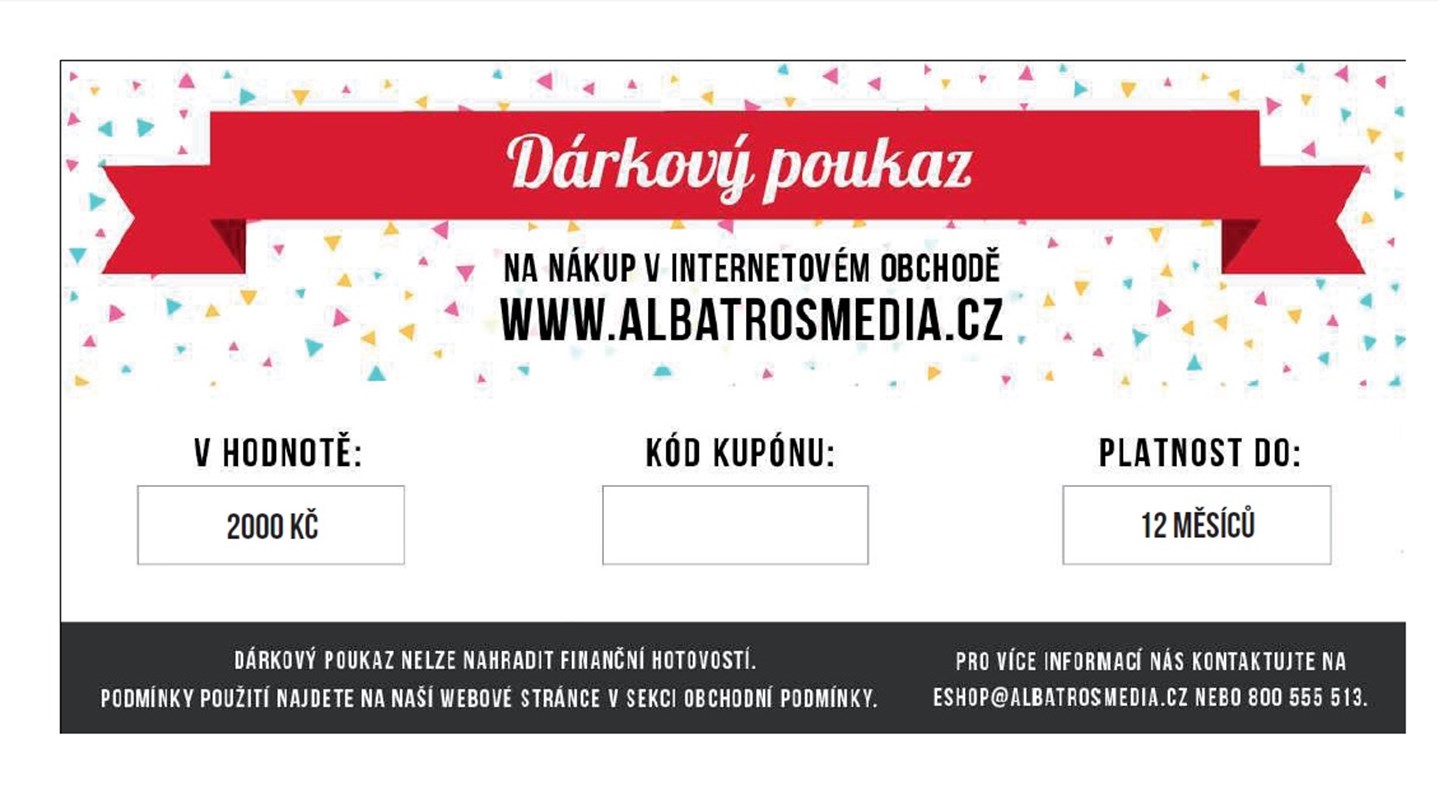 Elektronický dárkový poukaz v hodnotě 500 Kč je určen k úhradě objednávky na www.albatrosmedia.cz. Platnost poukazu je 12 měsíců od jeho vystavení a doručíme vám jej e-mailem ihned po zaevidování platby jako PDF soubor. Poukaz pak můžete vytisknout nebo jej jednoduše přeposlat e-mailem dál. V jedné objednávce je možné použít pouze jeden elektronický dárkový poukaz.