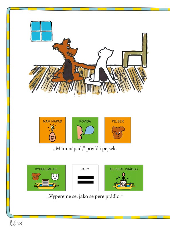Známý pohádkový příběh z pera i štětce Josefa Čapka je převyprávěn a upraven formou piktogramů, které mají dětem usnadnit vstup do světa čtení. Pomocí obrázků si děti mohou pohádku přečíst samy a vyprávět ji tak například dospělému. Mají radost z toho, že vše zvládnou samy, a získají tak motivaci a kladný vztah k četbě. Veselé příběhy pejska a kočičky, které těší již mnoho generací, přináší nyní díky piktogramům potěšení z četby dětem od dvou let, ale i dětem se speciálními vzdělávacími potřebami, jež mají potíže s porozuměním psanému textu.