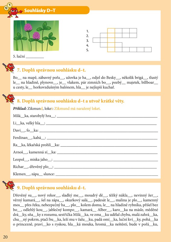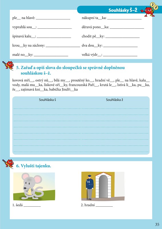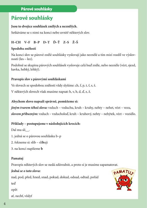 Cvičebnice je určena pro žáky 1. stupně ZŠ na upevnění a procvičení učiva párových souhlásek. Postavička čertíka Kvítka dětem zpříjemní samotné učení a díky němu jim půjde učení pekelně snadno. Nedílnou součástí jsou čertíkovy kouzelné karty, které najdete v příloze cvičebnice. Z jedné strany jsou vždy slovní spojení pro doplnění párových souhlásek a z druhé strany obrázek se správnou odpovědí. Po vystřižení si budete karty postupně procházet a ty, které si ještě nepamatujete, odložíte stranou a vrátíte se k nim ještě jednou nebo i vícekrát. Uvidíte, že za chvíli budete umět vše, jako když bičem mrská. To by v tom byl čert, abychom to spolu nezvládli!