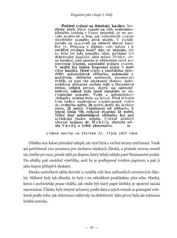 Řada událostí zachycených v knize je doložena články z prvorepublikových novin či dobovými fotografiemi.