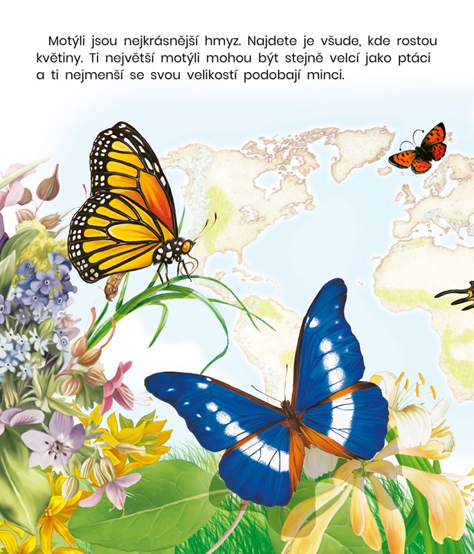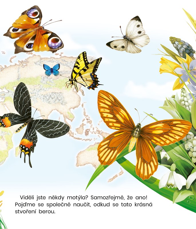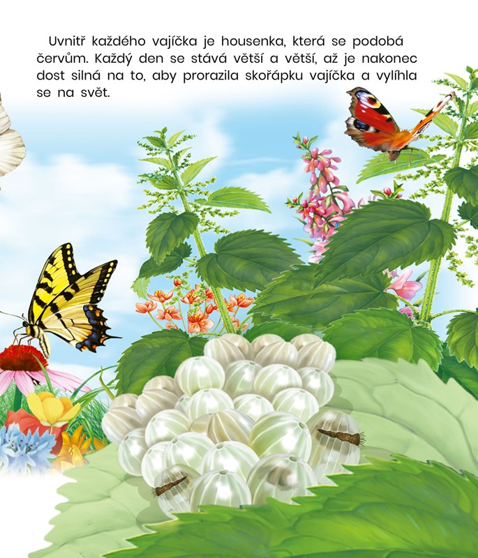 Motýli fascinují i ty nejmenší děti. Odkud se ale tito barevní třepotálci berou? Jejich cesta od vajíčka, přes housenku a kuklu až k dospělosti je nesmírně fascinující a děti rozhodně zaujme.