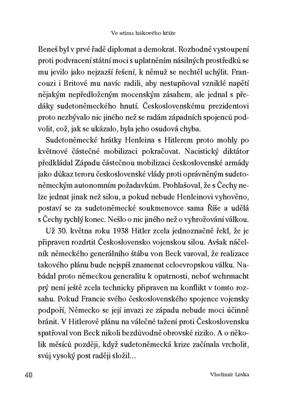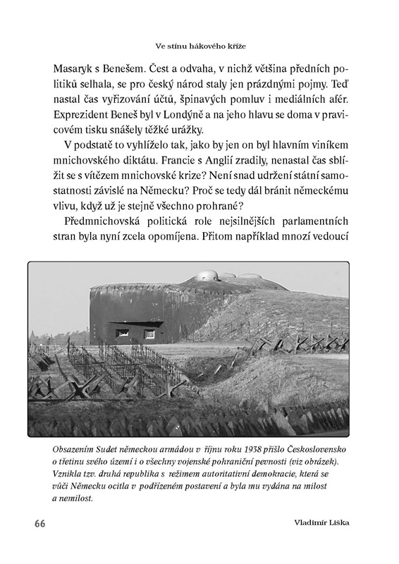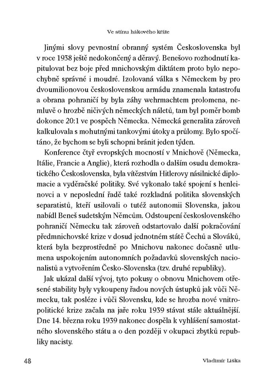 Další kniha známého spisovatele, záhadologa a badatele Vladimíra Lišky se vrací k pohnutým a nejvypjatějším okamžikům našich novodobých dějin, do doby, kdy byla zcela podkopána naše samostatnost a ohrožena existence národa. Kniha si klade za cíl seznámit především mladé čtenáře s dobou, od které uplynulo více než sedmdesát let. Morální apel, ať nezapomínáme na svou minulost, se táhne jako neviditelná nit celou touto publikací. Zabývá se především obdobím dějin mezi lety 1938–1945, ale nalezneme v ní i odbočky k letům předcházejícím, kdy se formoval duch nacionalismu a kdy Hitler získával svou moc v Německu.