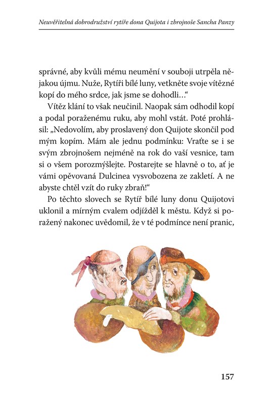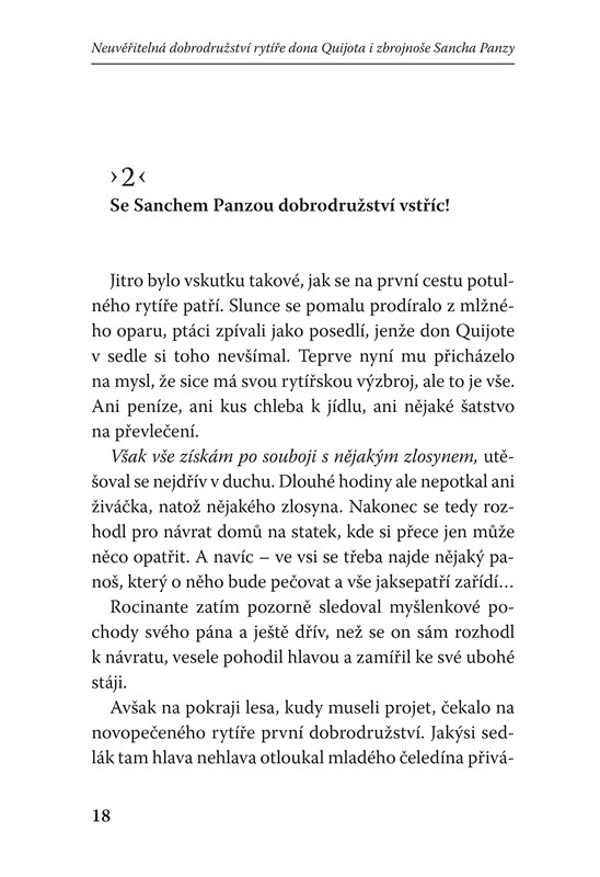 Klenot světové literatury převyprável pro děti přístupnou formou Vladimír Hulpach. Doplňují ho celostránkové barevné ilustrace slovenského ilustrátora Dušana Kalláye, nositele Andersenovy ceny. Proto neváhejte a vydejte se s potulným rytířem donem Quijotem vzkřísit zašlou slávu ušlechtilého rytířského stavu!