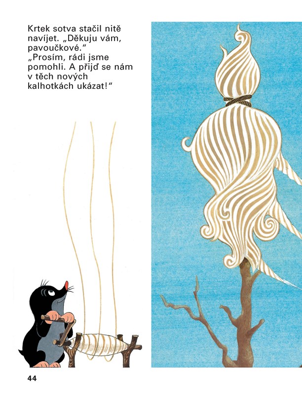 Jedna z nejznámějších a nejpůvabnějších knížek o tom, jak se dílo podaří, když se všichni spojí a každý dělá, co umí. Krtek zatouží po krásných modrých kalhotkách, sám ale neumí ani tkát, ani stříhat, šít nebo barvit látku. Poprosí tedy o pomoc své kamarády – raka, rákosníčka, žabku, čápa, ježka, pavoučky a mravenečky. Ti mu rádi pomohou, a Krtek se nakonec může radovat z nových kalhotek s velkými kapsami, kam může schovat své malé poklady.