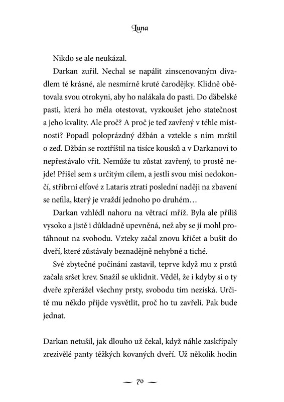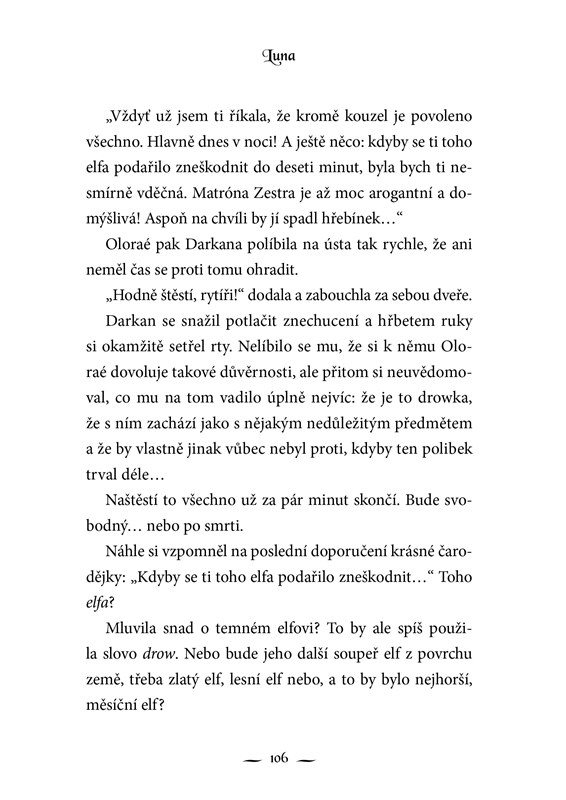 Luna je mladičká stříbrná elfka, která vyrůstala ve smečce vlků. Když nepřátelští bojovníci, temní elfové, pobijí její adoptivní rodinu, objeví v sobě dříve netušenou schopnost ovládat tajemnou energii. Luně se tak podaří utéct z nebezpečí a ukryje se u svého učitele, který jí poodhalí podivné okolnosti jejího narození. Při hledání své skutečné rodiny se setkává s temným elfem Darkanem a jejich životy se osudově propletou...