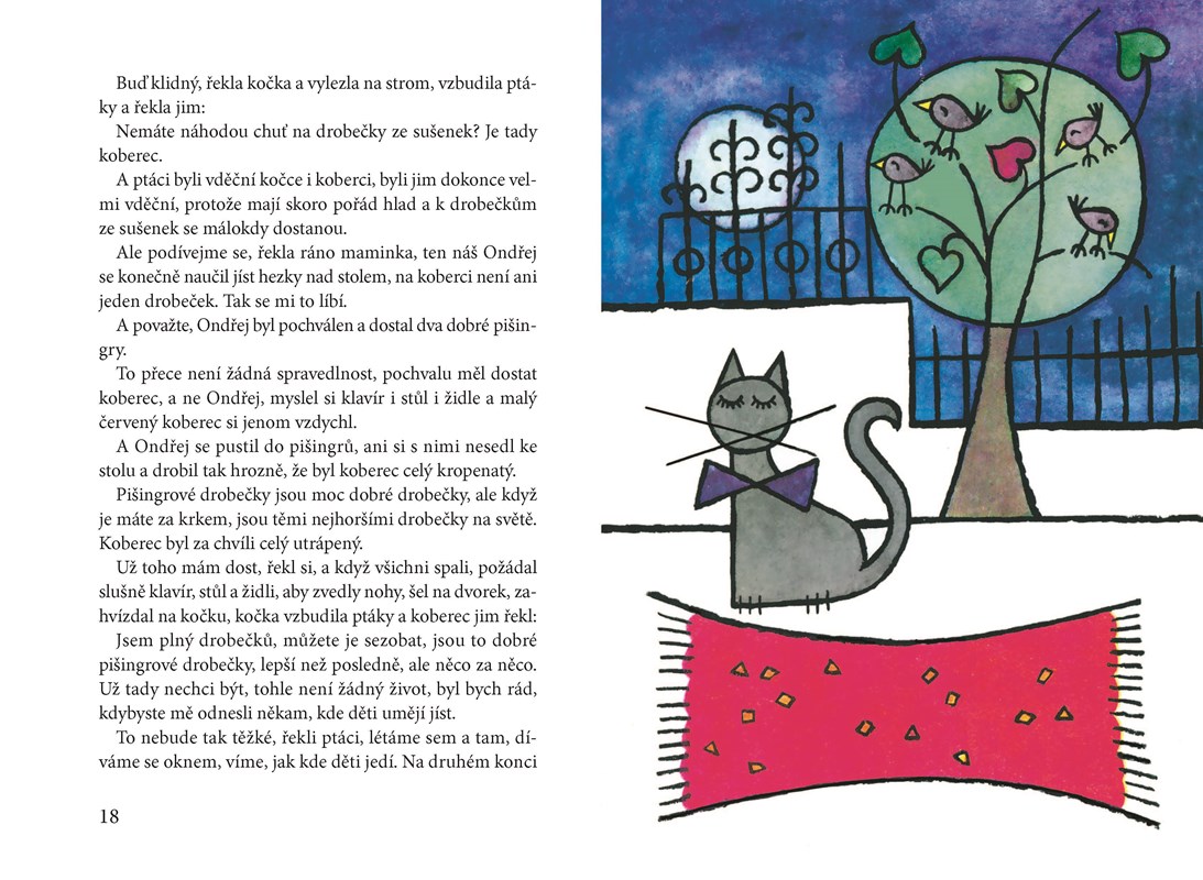 Moderní pohádky s nevšední fantazií a nápady potěší i pobaví všechny malé čtenáře. Třeba Jakub si zasadí dědečka a na keři mu jich vyroste dvě stě, Barborku sáček cucavých bonbonů oloupí o zoubky a Zuzanka píše nejdříve písmenka moc hubená, poté příliš tlustá, takže se všemi má paní učitelka plno starostí. Ale nejsou rozpustilé jen děti. Stonožka vyvede boty školních dětí do parku, cirkusový lev vyrazí na prázdniny do Afriky a tamhleten skrývající se hroch má panický strach z očkování. Následuje však ještě spousta dalších vyprávění. Veselých pohádek je sedmnáct – a stojí za to přečíst si je všechny!