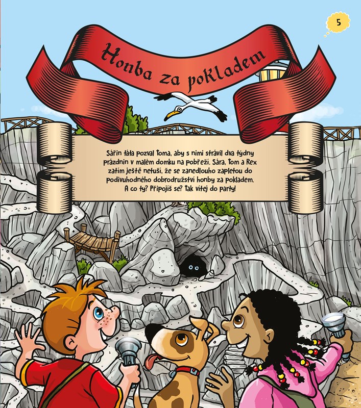 Dvojice kamarádů, Tom a Sára, společně s malým odvážným pejskem zažívají fantastická dobrodružství. Čeká je bláznivá honba za pokladem, výlet mezi Inky a podivně podivná párty ve strašidelném hotelu. Napínavá dobrodružství, která v sobě skrývají záhadu na každé stránce. Zašifrované vzkazy, tajné písmo, spletitá bludiště, procvičování logického uvažování i pozornosti čekají na každého, kdo má chuť a odvahu přidat se! Vše zábavně a s vtipem.