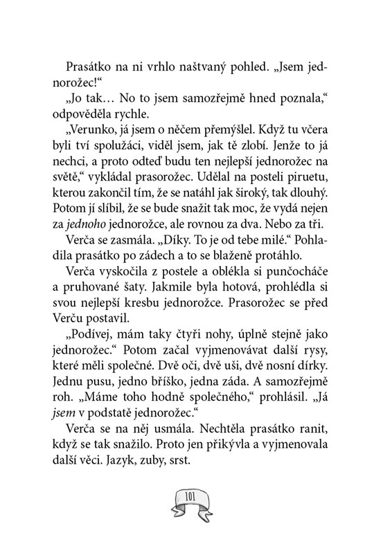 Verča však ještě netuší, že díky jedinečnému prasorožci pozná, že vzhled není to hlavní. Mnohem důležitější je dobrosrdečnost a opravdové přátelství.