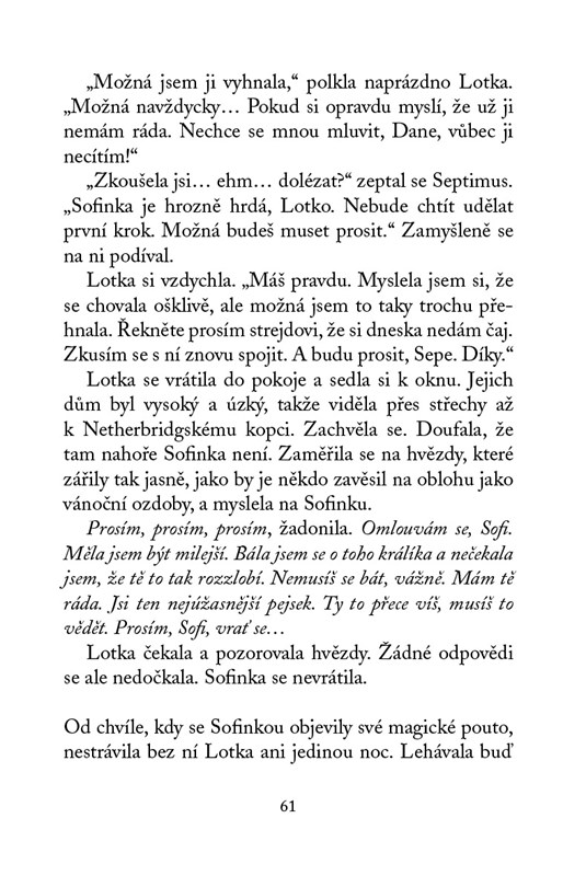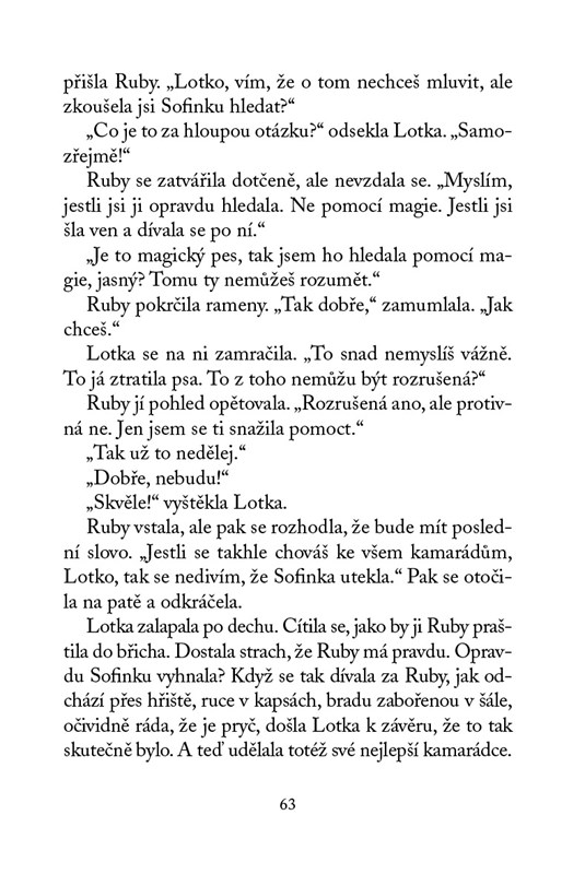 V jednom obchodě se zvířátky se ve špinavé kleci choulil nešťastný králík. Lotka poznala, že má magické schopnosti, a rozhodla se ho zachránit. Jeho přítomnost v kouzelném zverimexu se ale vůbec nelíbí jezevčici Sofince, která se urazí a uteče z domova. A aby toho nebylo málo, začnou se dívce zdát podivné sny. Naznačují, že Lotčin dlouho nezvěstný otec stále žije – a míří do Netherbridge!