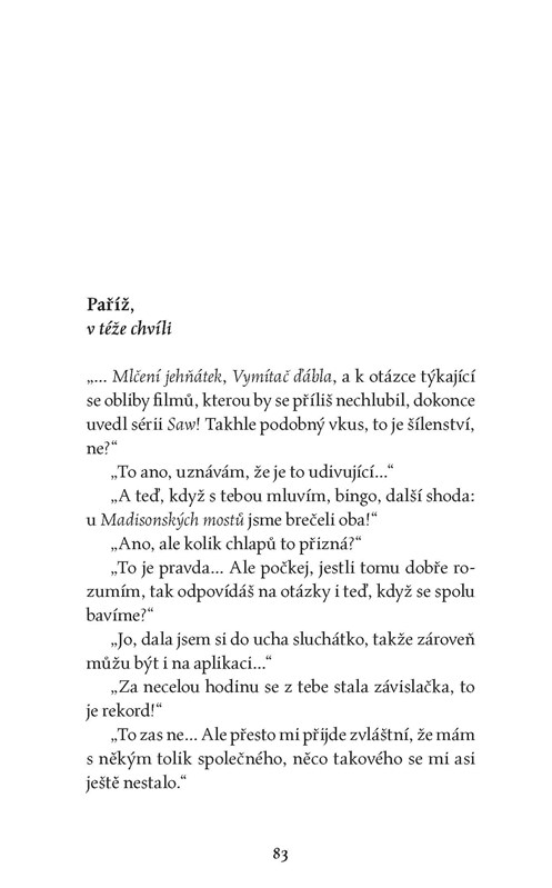 Třicetiletá Pařížanka Julie přestala věřit na lásku, a aby si vydělala na živobytí, musí dělat uklízečku. Paulovi je čtyřicet. Je chirurg, žije v Londýně a stále se nesmířil se smrtí své ženy. Životní cesty Julie a Paula by se nejspíš nikdy neprotnuly… A přesto se postupně sblíží díky zvláštní aplikaci Click & Love, která si však zároveň pohraje i s jejich nervy.