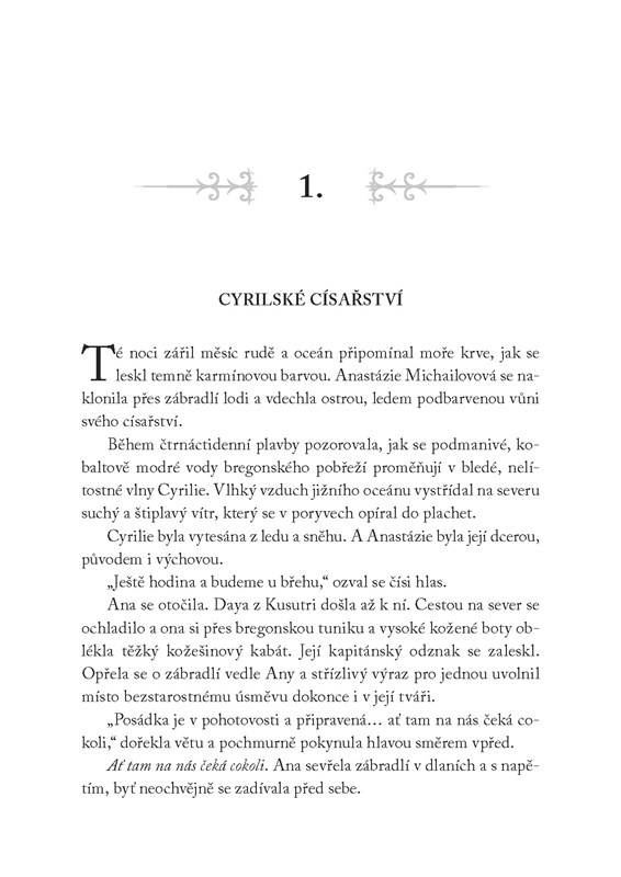 Rudá Tygřice Ana se vrátila do Cyrilie. V zemi, jež bývala jejím domovem, však vládne temnota. Císařovna Morganya drtí Spřízněnce i obyčejné lidi železnou pěstí. Anini spojenci byli rozprášeni a pomoc od povstalecké skupiny Rudých plášťů je v nedohlednu. A nejhorší ze všeho je, že Ana ztratila svou schopnost ovládat krev. Bez ní netuší, kým vlastně je a zda dokáže Morganyu porazit. Konečný souboj je však nevyhnutelný – a v sázce je osud celého císařství.