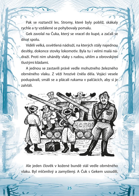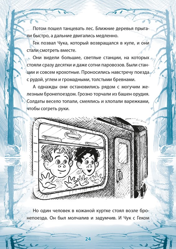 Dojemný příběh o cestě malých chlapců a jejich maminky za tatínkem, který pracuje daleko na severu, je protkán neuvěřitelně světlou a dobrou atmosférou. Autor knihy, Arkadij Gajdar, s láskou píše o malých šibalech a neposedech s podivnými jmény a podrobně popisuje jejich malé pranice a velká dobrodružství, jež zažívají po cestě.