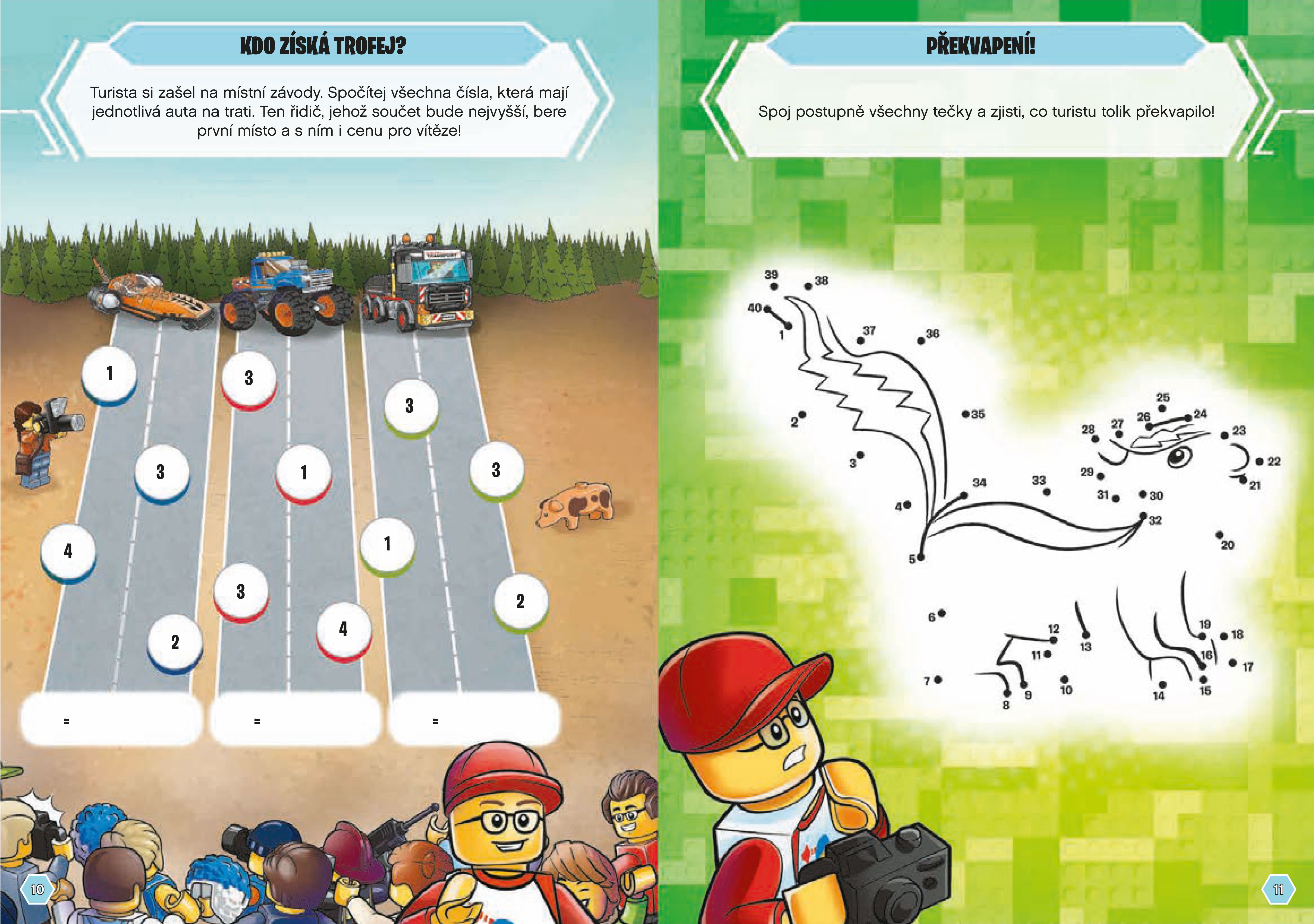 Vítej v LEGO® City! Užij si výlet v tomto fantastickém městě z kostiček, kde tě čeká spousta překvapení – od neuvěřitelných závodů až po plavbu na vodě. Přečti si legrační komiks, vyplň zábavné aktivity, a hlavně nezapomeň sestavit minifigurku turisty. Jako jeho cestovatelský parťák si totiž užiješ báječné chvilky!