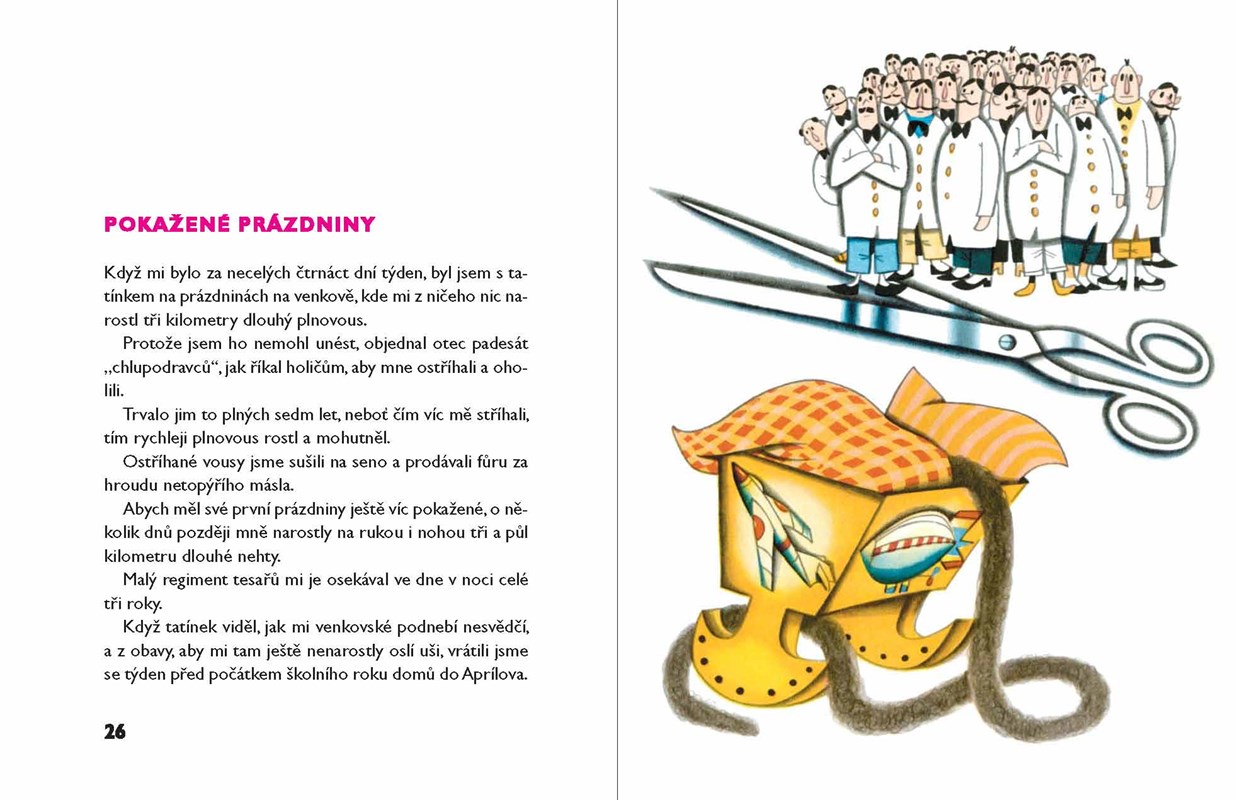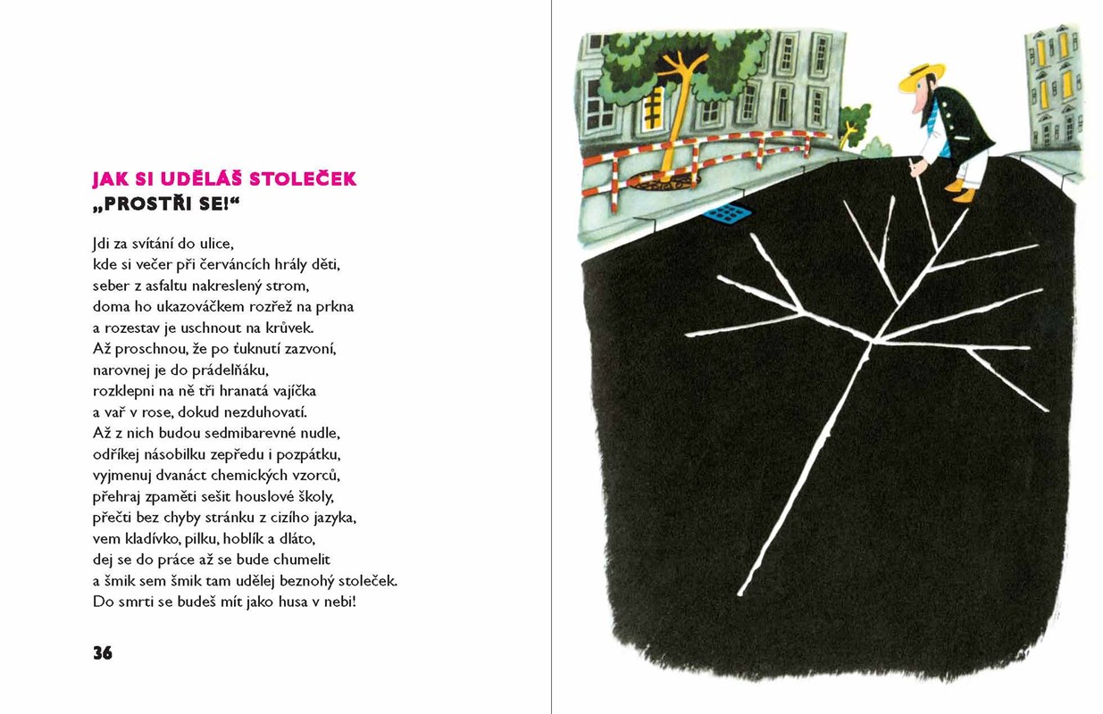 Poetická knížka, která vyšla poprvé už v roce 1961, v sobě snoubí nápady a vyprávěnky Jiřího Koláře s pozoruhodnými ilustracemi Vladimíra Fuky. Ukrývá jak náročnější, tak i zcela nenáročné básně a krátké prózy. Hraní si se slovy a s - v dětské literatuře netradičním - volným veršem vrcholí na konci knížky originální skládankou.