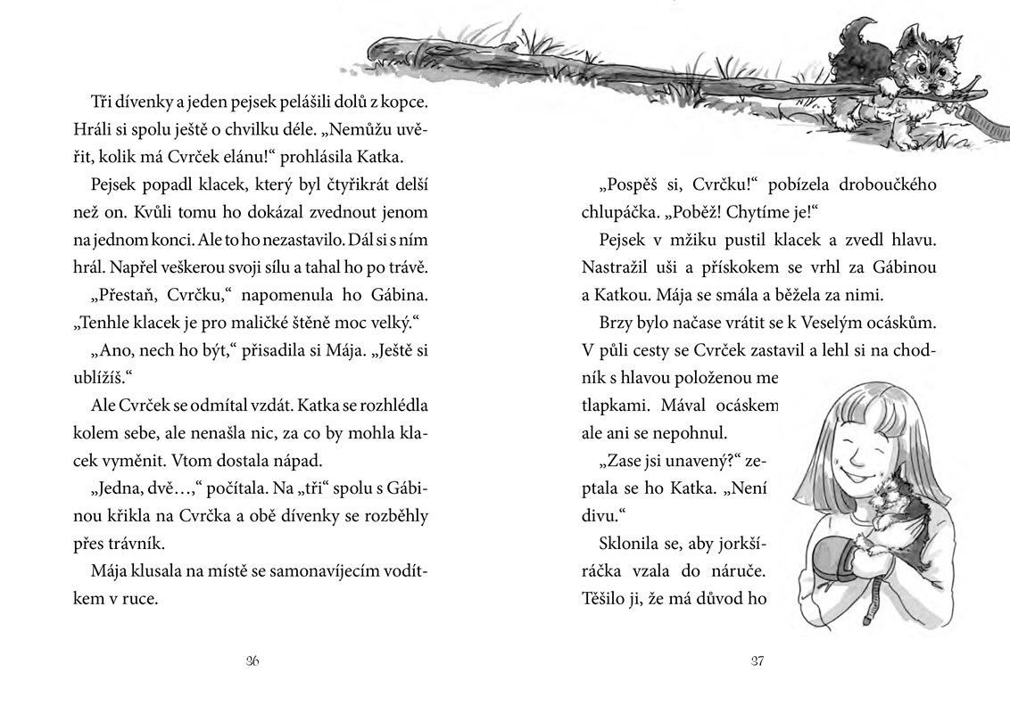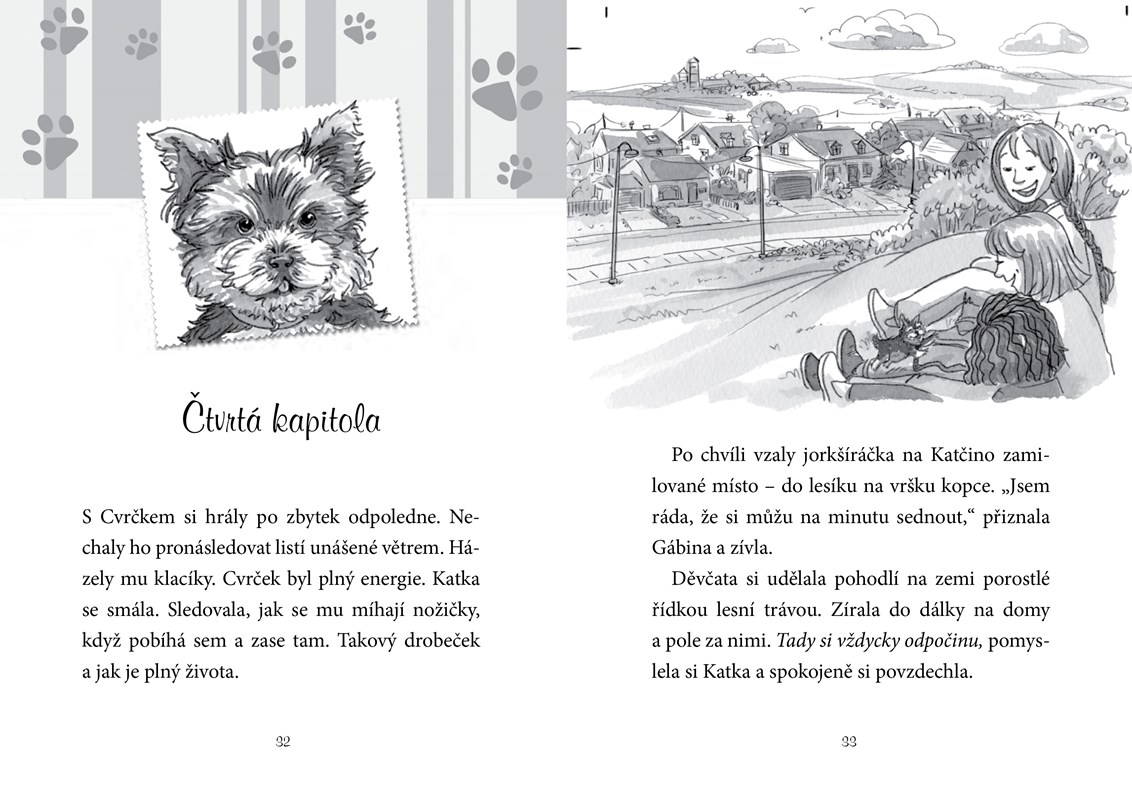 Katka , Mája a Gábina opět dostaly na starost malé štěně. Tentokrát pomáhají tetě Janě s péčí o jorkšírského teriéra jménem Cvrček. Cvrček je sice mrňavý, ale plný energie. Když zrovna nespí, nevydrží chvíli v klidu a vrhá se na všechno, co mu přijde do cesty. Podaří se děvčatům udržet ho co nejdál od potíží?