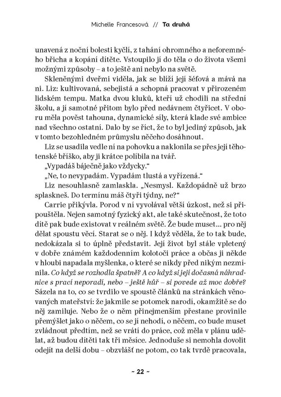 Carrie je úspěšnou televizní producentkou, která má perfektní život a perfektní manželství. Je talentovaná, oblíbená a respektovaná. S manželem Adrianem, oceňovaným scenáristou, se už před lety rozhodli, že nechtějí děti. Ale nyní, zrovna když jsou oba na vrcholu své kariéry, Carrie zjistí, že je těhotná a překvapená tím, že si chce dítě nechat. Ale v náročném zaměstnání plném konkurence, kde je volný čas považovaný za známku slabosti, se dívá na období mateřství s obavami.