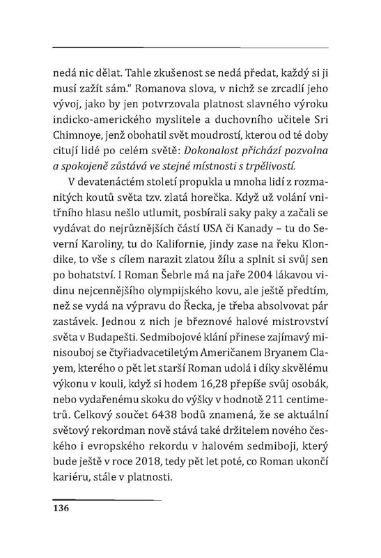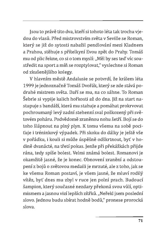 Kudy vedla cesta Romana Šebrleho, několikanásobného olympijského medailisty a držitele mnoha ocenění ze světových i tuzemských šampionátů? Publikace Romana Smutného vám přiblíží zrod atletické hvězdy od prvních krůčků přes největší úspěchy až po roli milujícího táty a moderátora televizních novin.