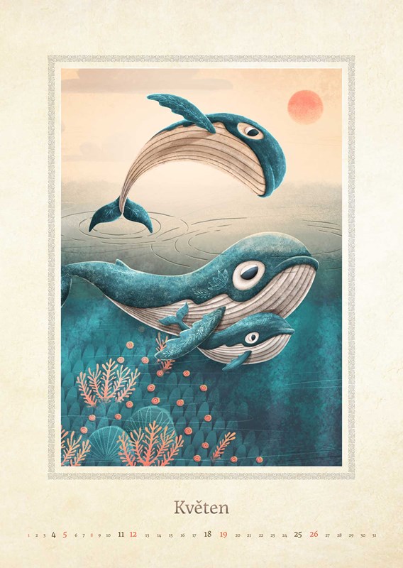 Oblíbená velryba Gerda k vám připlouvá v nové podobě. Prožívejte její příběh prostřednictvím jedinečného kalendáře po celý rok 2019. Až kalendář doslouží, můžete si obrázky vystříhat a rozvěsit, kam se vám zlíbí. Krása jedinečných ilustrací Adriána Macha vás tak může provázet, jak dlouho si budete přát.