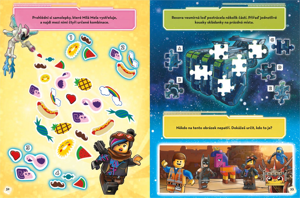 Tví oblíbení hrdinové z LEGO Movie 2 se vydávají vstříc novým dobrodružstvím a potřebují na nich tvou pomoc. V této knize budete společně řešit různé hlavolamy, plnit úkoly, procházet nebezpečnými situacemi, ale také se dobře pobavíte u vtipných komiksových příběhů a procvičíte si svůj postřeh. Tak neváhej, sestav si přiloženou minifigurku Emmeta a vydej se s ním na bláznivou jízdu plnou akce!