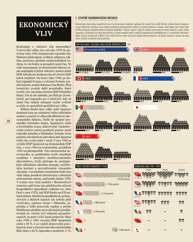 Druhá světová válka je kromě jiného ohromnou studnicí dat. Jak však tato data a vývoj konfliktu samotného interpretovat jasně a srozumitelně? Řešením je výklad pomocí nejmoderněji pojaté a přehledné infografiky. Ta je zpracována s maximální historickou přesností a zároveň její atraktivní forma osloví každého čtenáře. Poznejte tedy kořeny konfliktu, jeho ekonomický rámec, taktiku, zbraně, největší operace, to vše neuvěřitelně poutavě zpracované v 60 kapitolách.
