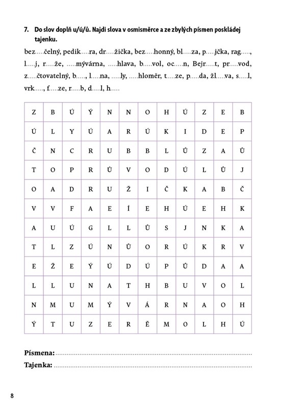 Kniha je určena pro domácí procvičování, využít ji však mohou i učitelé jako doplňkový a rozšiřující materiál k výuce českého jazyka.