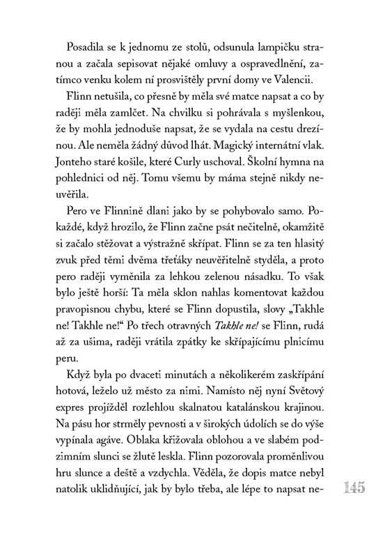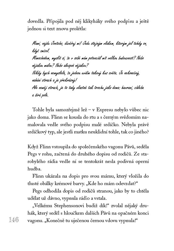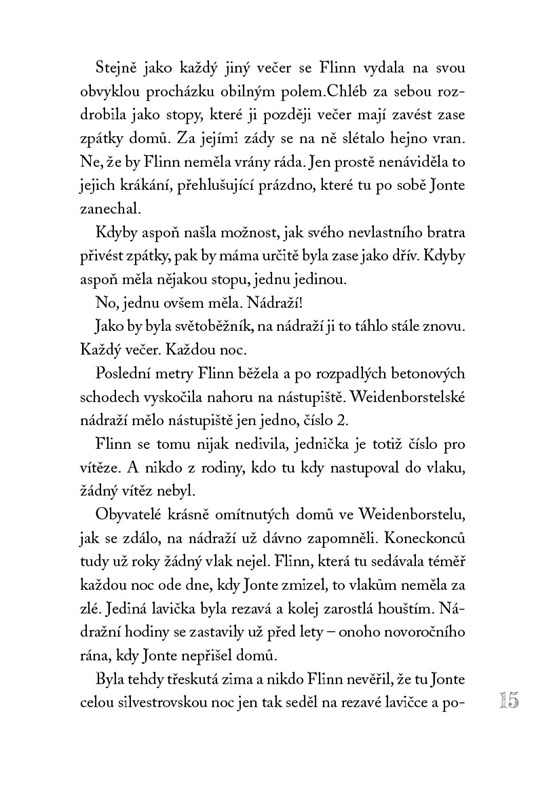 Noc co noc sedává třináctiletá Flinn na opuštěném nádraží, odkud před dvěma lety beze stopy zmizel její nevlastní bratr Jonte. Zůstala jí po něm jediná vzpomínka – pohlednice s podivnými verši, kterým nerozumí, a obrázkem starého vlaku, jejž ale nikdo kromě ní na pohlednici nevidí.