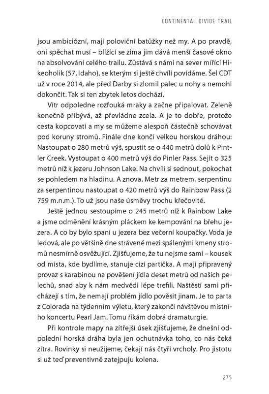 Do svých čtyřiceti jsem jen pracoval nebo se válel na gauči. Pak jsem začal chodit. V roce 2018 jsem už podruhé stanul na hranici Mexika a USA, abych tentokrát s lehkým batohem a kanadskou parťačkou došel do Kanady po hřebeni Skalistých hor a zjistil, proč se v souvislosti s 4 500 km dlouhým Continental DivideTrailem používá věta „Obejmi brutalitu.“ Co bude těžší? Projít divočinou, nebo sladit rozdílné představy o společném fungování?