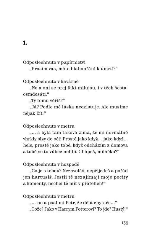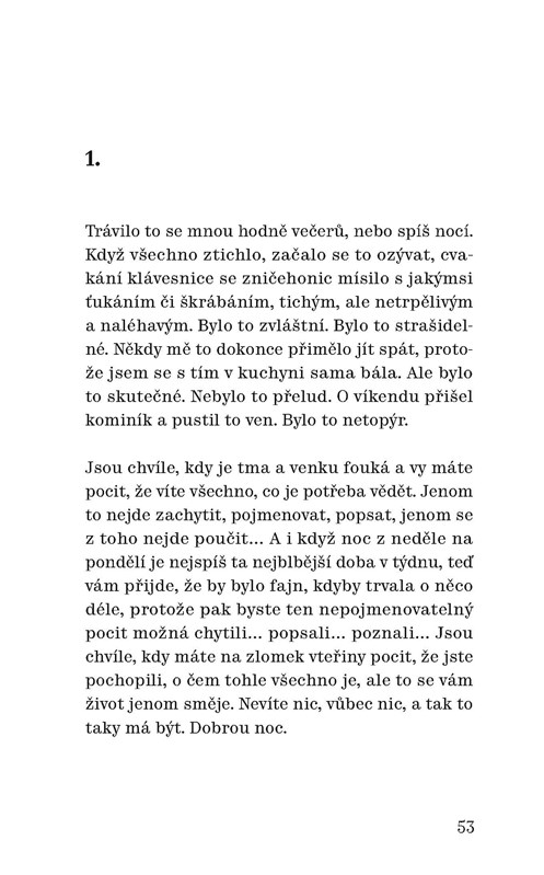 Kniha nenápadná názvem, formou i obsahem, ale která čtenáři nabízí zvláštní sourodý svět. Svět vtipný, radostný a harmonický, i když často plný překvapení a drobných nezdarů. Je složena z autentických facebookových statusů, které autorka vnímá jako svébytnou literární formu. Je to kniha o údivu nad nevšedností všedního života. Krátké texty jsou řazeny do tematických cyklů a mapují autorčin běžný život od půvabných projevů ženské marnivosti přes prožitky z cestování, sportování, čtení, zaujetí vlastní prací redaktorky a překladatelky až po výchovu dětí a hlubší zamyšlení o paradoxech života. Autorka neopouští půdu lehké sebeironie, její humor není jadrně třaskavý, ale tichý a nenápadný, zato déle zůstává v podvědomí čtenáře. Svět Michaely Škultéty je světem, ve kterém čtenář rád pobude, a do své reality se pak vrátí osvěžen a pln úsměvně zdrženlivého optimismu. Michael Třeštík