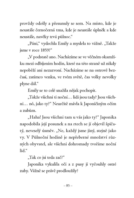 Emilyina výstřední matka se zálibou v punku a její nenápadný a zamlklý otec zmizeli. Dívka brzy přijde na to, že uvízli v podivném nočním světě, ve kterém se čas zastavil o půlnoci a obývají ho příšery a strašidla všeho druhu. A všechny jsou jí v patách.