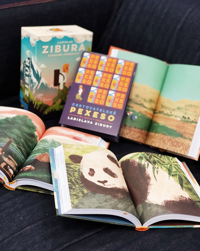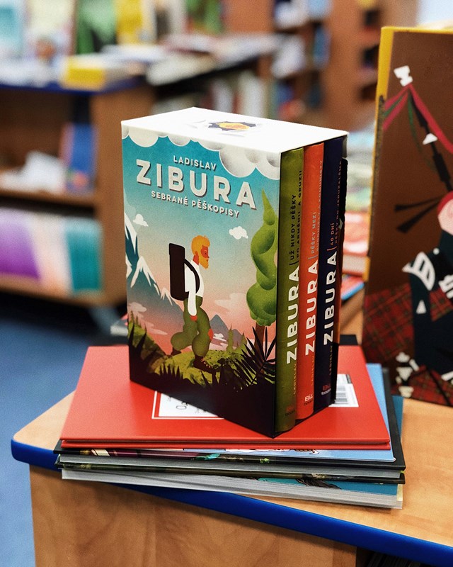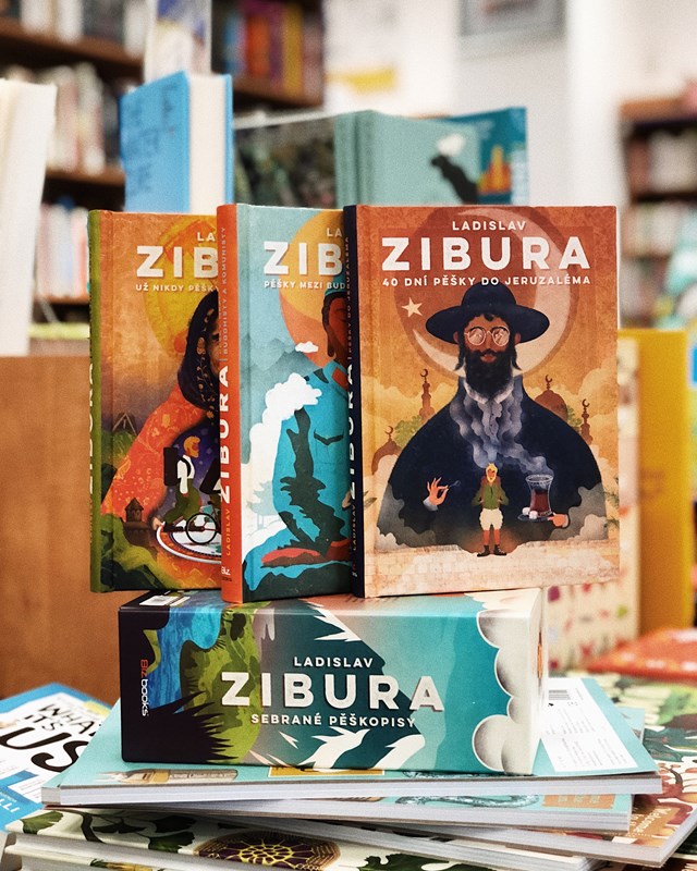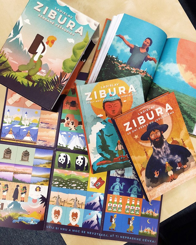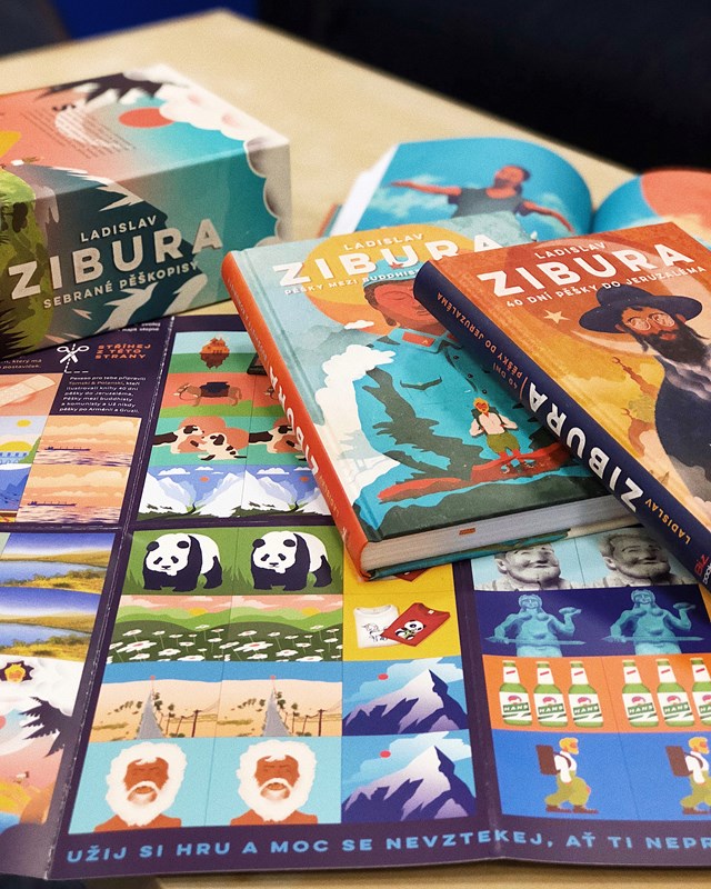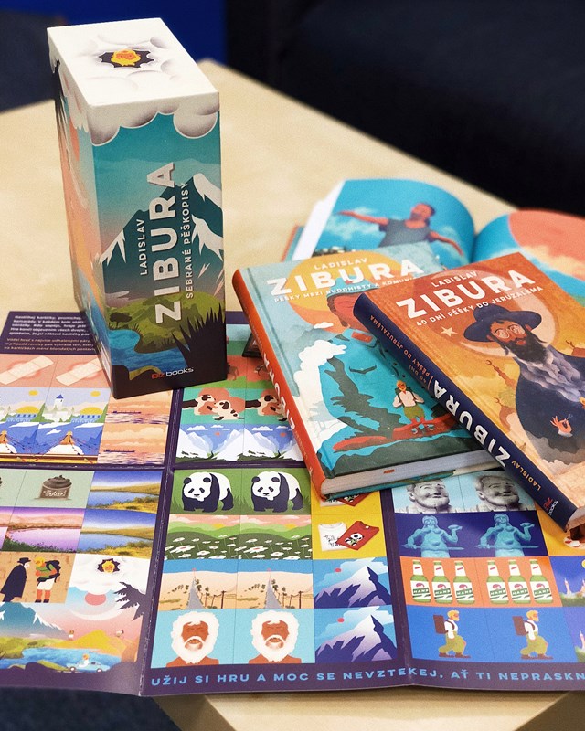 V dárkovém trojboxu najdete tři knížky – 40 dní pěšky do Jeruzaléma, Pěšky mezi buddhisty a komunisty, Už nikdy pěšky po Arménii a Gruzii plus pexeso na motivy ilustrací ze Ziburových knih z dílny ilustrátorského dua Tomski & Polanski.