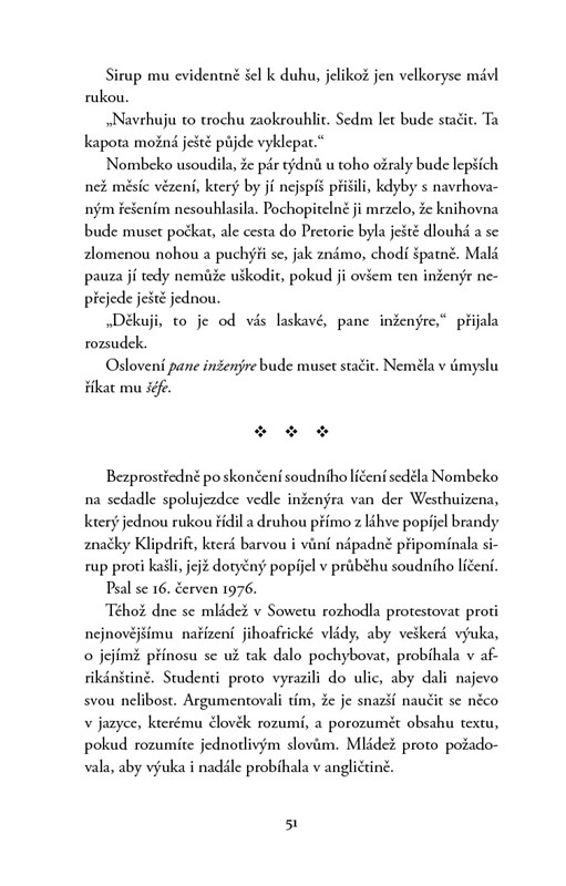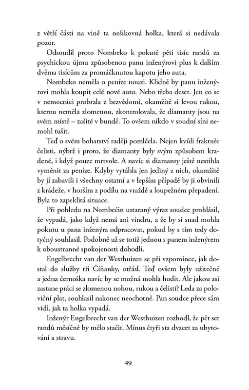 Nombeko začala pracovat v pěti letech jako vynašečka latrín na předměstí Johannesburgu, v deseti letech osiřela. Nic nenasvědčovalo tomu, že by neměla prožít svůj život v jedné z chatrčí největší chudinské čtvrti světa a pak tu předčasně umřít, nikým nepostrádaná. To by ale nebyla Nombeko – analfabetka, která uměla počítat. Osud i její talent ji zavedou až do mezinárodní politiky, na druhou stranu zeměkoule, ke dvěma identickým a zároveň velmi odlišným bratrům. Během jejího dobrodružného putování se jí podaří zamotat hlavu agentům nejobávanější tajné služby nebo být unesená ve špinavém náklaďáku na převoz brambor. A tím to zdaleka nekončí…