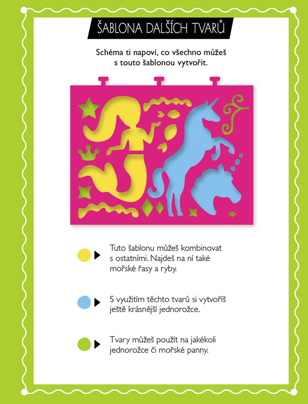 V této úžasné knížce najdeš vše potřebné k tomu, abys vytvořila své vlastní obrázky jednorožců a mořských panen. Inspiruj se a užij si skvělou zábavu!