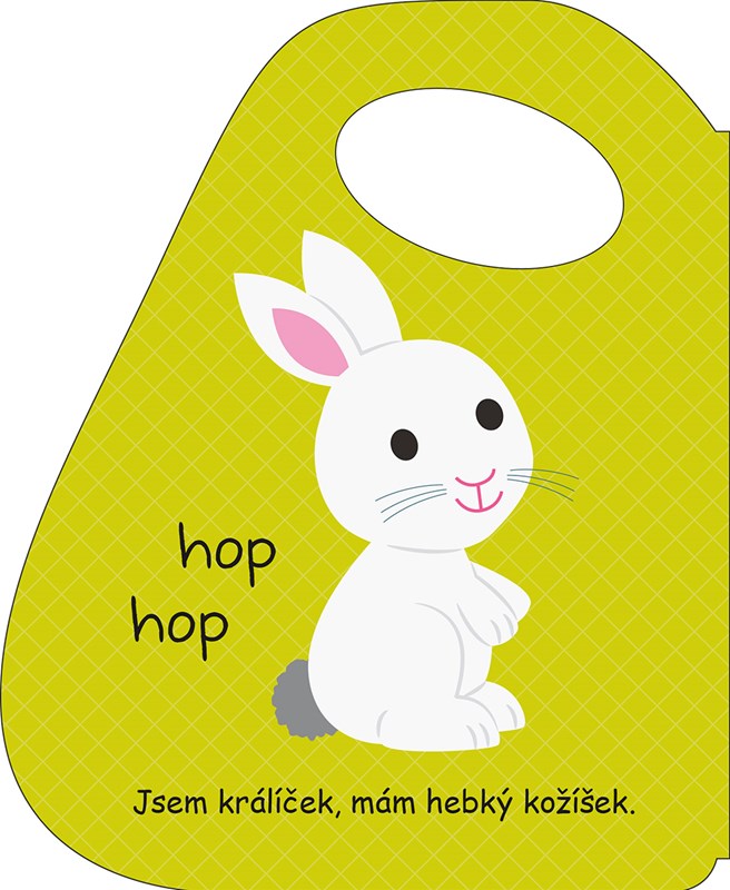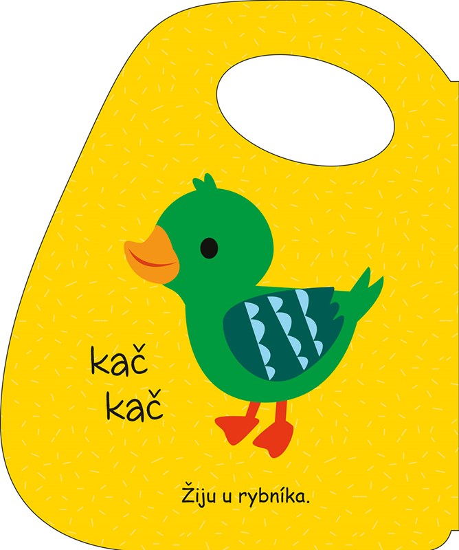 Leporelo s veselými obrázky a praktickým ouškem na nošení nebo přichycení ke kočárku.