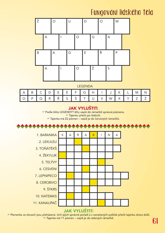Myslíte si, že vám to pálí? Rádi s tužkou v ruce řešíte složité rébusy, záhadné šifry a zapeklité křížovky? Zajímáte-li se navíc o fungování lidského těla a chcete se dozvědět více informací z této oblasti, je tento pracovní sešit určen přímo pro vás.