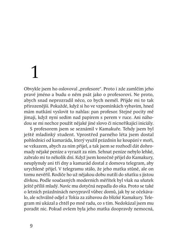 Román Kokoro (japonské slovo znamená srdce, ale také mysl, duch či cítění) je považován za vrcholné dílo Sóseki Nacumeho, ve kterém mistrně ztvárnil hluboké rozpory japonské společnosti na sklonku éry Meidži (1868-1912). Mladý student se setkává s profesorem, starším mužem, který se drží stranou společnosti, a jeho ženou. Postupně proniká do tajemství profesorova života a odhaluje jeho třináctou komnatu, tragickou smrt jeho přítele ze studií. Nacumeho román je také vylíčením propasti mezi starší a mladší generací, která významně poznamenala Japonsko na počátku moderní éry a je opět aktuální dnes, v době globalizace. Není divu, že celosvětově roste zájem o Sósekiho dílo a samotné Kokoro se dočkalo v posledních letech řady překladů do světových jazyků, mimo jiné již třetího překladu do angličtiny.