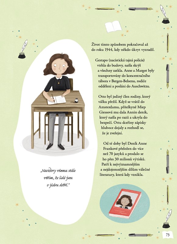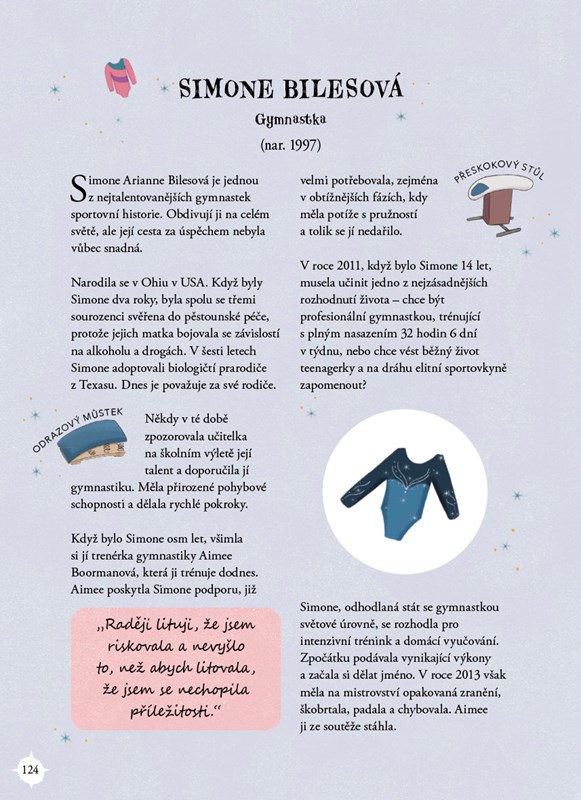 Poznejte životy těchto průkopnic. Dozvíte se, v čem byly výjimečné, jaké překážky musely překonávat a co je na jejich cestě inspirovalo. Jejich příběhy předají mladým čtenářkám jedno z nejdůležitějších poselství: je třeba se nebát a jít za svými sny a ideály. Každý má totiž možnost změnit svět.
