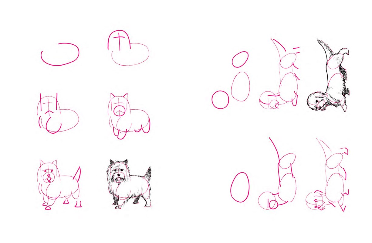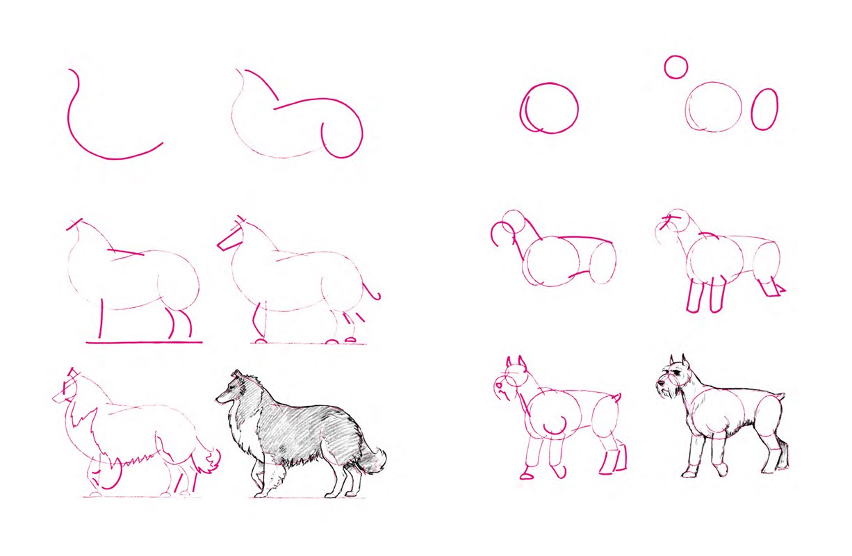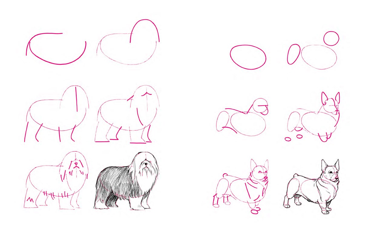 Praktické návody usnadní mladým umělcům naučit se kreslit psy nejrůznějších ras, jako jsou zlatí retrívři, němečtí ovčáci, malamuti, kolie, yorkšíři a mnozí další.