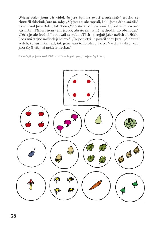 Autorka proto dobře uvádí dítě do jednotlivých pojmů pomocí základní myšlenkové operace - porovnávání. To je základem každé kategorizace, třídění, seskupování podle významu i každého rozhodování.