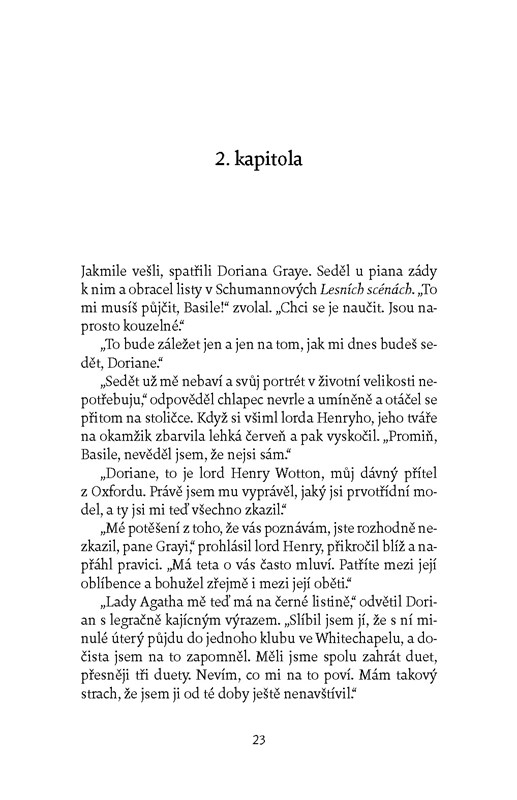 Jediná rozsáhlejší próza Oscara Wilda předvádí na fantastickém příběhu aristokrata, jemuž kouzelná moc propůjčila věčnou krásu a mládí, rozpor mezi morálkou a estetickým prožitkem – zatímco Dorian Gray zůstává stále dvacetiletý, jeho dokonalá podoba na plátně stárne a oškliví podle toho, kolik dívčích srdcí zlomil a kolik nadějných mladíků přivedl do zkázy.