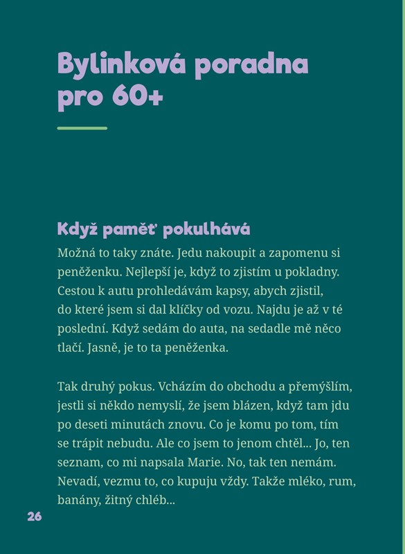 Dejte kytky do vázy, dojezte poslední kousek dortu. Posaďte se na oblíbené sofa a vyzkoušejte námi naservírovanou duševní lahůdku. Připravili jsme pro vás kulatinové menu složené z těch nejlepších ingrediencí. Mezi jednotlivými chody najdete pohádku pro jubilanty ve vašem věku, bylinkovou poradnu, cvičení a mnoho dalšího.