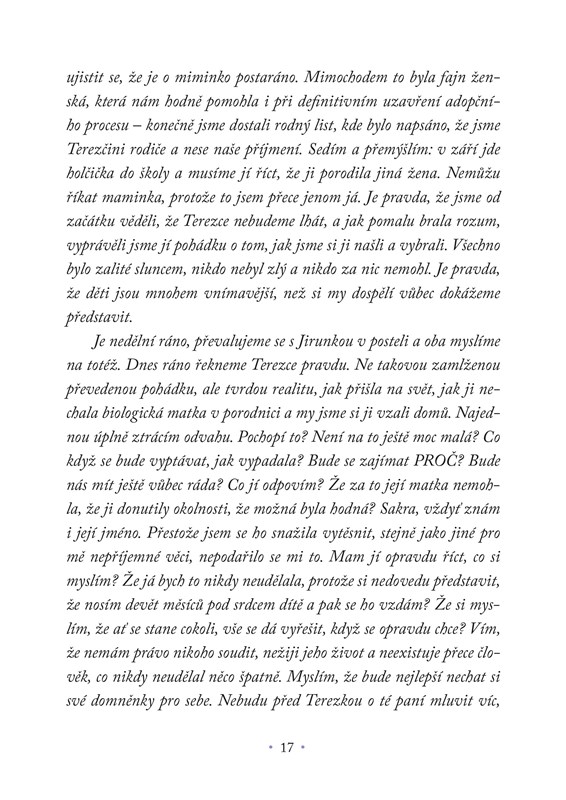 Nejsem žádná holka, která prodává oblečení v second handu. Jsem holka, kterou vlastní mamka nechala napospas v porodnici. Rozhodla jsem se vyprávět svůj příběh o tom, jaký to je být adoptovaným dítětem, teenagerem bez biologických rodičů a dospělým, co se s tím vším musí nějak vyrovnat. Píšu o hledání vlastní identity a kořenů. O tom, že věci nejsou černobílý. Odkrývám prekérní situace, s nimiž se adoptovaní během života setkávají. Jsem sice holka z druhý ruky, ale taky originál a strůjce vlastního života.