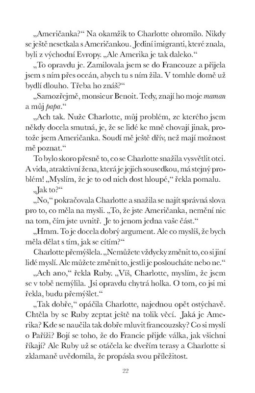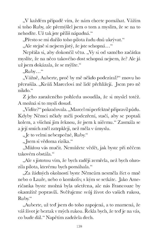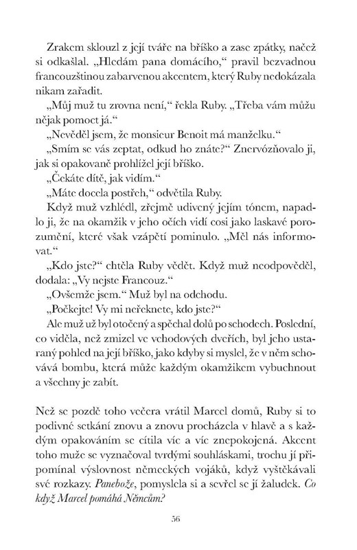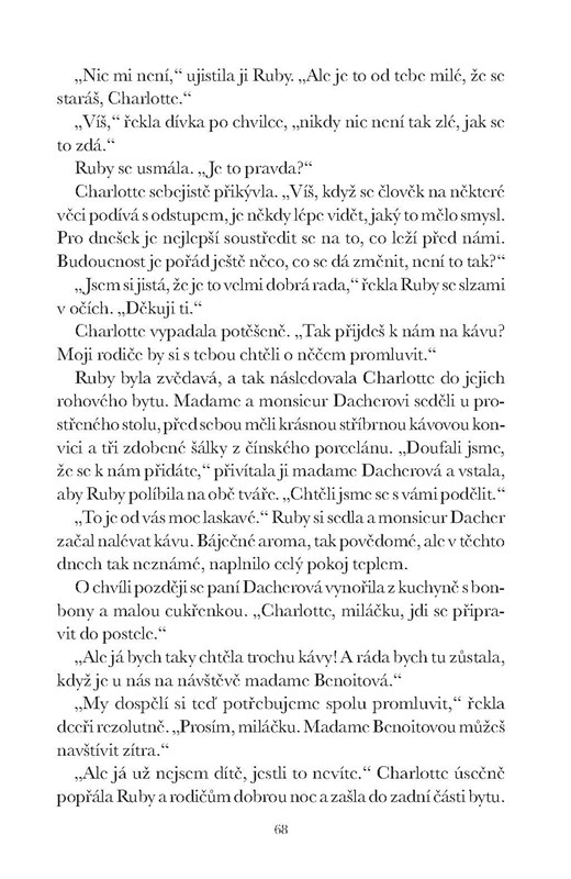 Ve stejném domě bydlí také židovská rodina Dacherových, jejíž dcera Charlotte je pro Ruby jedinou spřízněnou duší. Zatímco Dacherovým hrozí koncentrační tábor, Ruby odmítá nečinně přihlížet zoufalé situaci a doufá, že jednou bude žít podle svých představ. Thomas touží po návratu do spojenecké armády, aby mohl bojovat za mír, a Ruby sní o tom, že jednou zase uvidí kvést vlčí máky v rodné Kalifornii. Nejdříve ale musí skončit druhá světová válka.