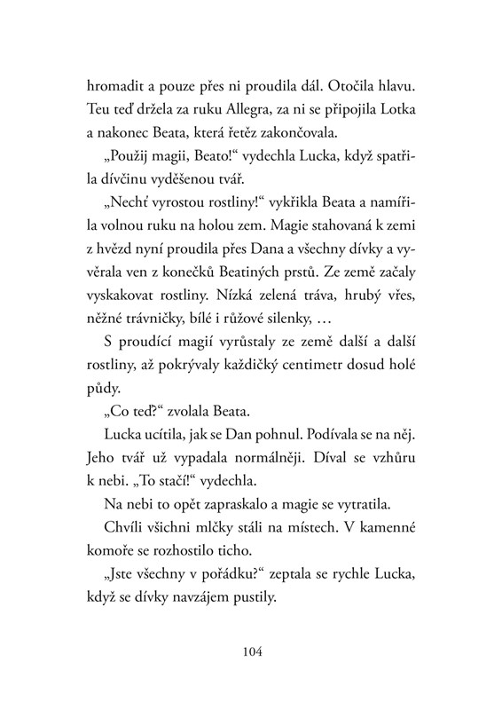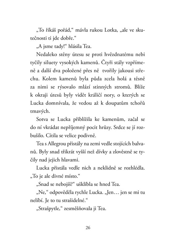 Lucka a její nejlepší kamarádka Allegra jedou na prázdniny navštívit hvězdné přátele ve Walesu. Kolem se dějí podivné věci – mění se počasí, někdo chytá zvířata do pastí a v prastaré kamenné síni přes noc hoří ohně. Lucku čeká další dobrodružství a s ním i poznání, že z otravných lidí se mohou stát spojenci a ti přátelští mohou být naopak nebezpečnější, než by se člověk nadál...