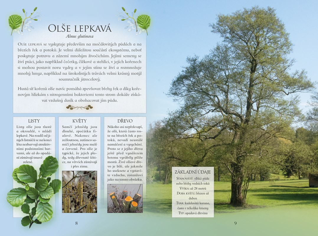 Kniha je vhodná pro celou rodinu a popisuje stromy od akátu až po zimostráz. Její rozměr umožňuje sbalit ji kamkoli s sebou, do lesů, do parků, na procházky kolem vod…