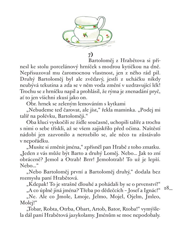 Bartoloměj bydlí v městečku Řeřichově a stále přemýšlí, jak by si přičaroval bratra, čtvrťáka jako je on. Tatínkův bratr bydlí v Hrabětově, je kouzelníkem a právě musí odjet na dvouměsíční turné. Jeho syn ale má zůstat doma, a proto prosí, jestli by se ho ujali hodná teta a jediný strýček. A tak jednoho dne vystoupí na nádraží kluk. Vypadá jako Bartoloměj, stejně se jmenuje, má i shodné datum narození. Přestože se bratranci nikdy neviděli, hned se skamarádili. A od té chvíle nastal čas plný dobrodružství, fantazie a velkého přátelství.