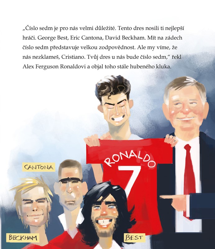 Vydejte se za krásným fotbalovým dobrodružstvím. Hrdina našeho příběhu se jmenuje Cristiano Ronaldo a možná jste ho už viděli v televizi, je totiž zářivou fotbalovou hvězdou. Ale znáte jeho skutečný životní příběh? Cristiano, rodák z ostrova Madeira, vyrůstal v chudé rodině. Jako dítě nejprve neměl ani pořádný míč, kopal si jen s vlastnoručně vyrobeným hadrovým balónem. Díky talentu a píli se však neustále zlepšoval a po čase o něj projevily zájem velké fotbalové kluby. A tím započala jeho cesta, která vedla z malého ostrova až do Realu Madrid. Seznamte se s legendou, poznejte Cristiana Ronalda.