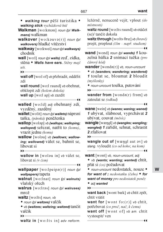 - důsledný gramatický výklad každého hesla (plurál, stupňování, časování atd.)