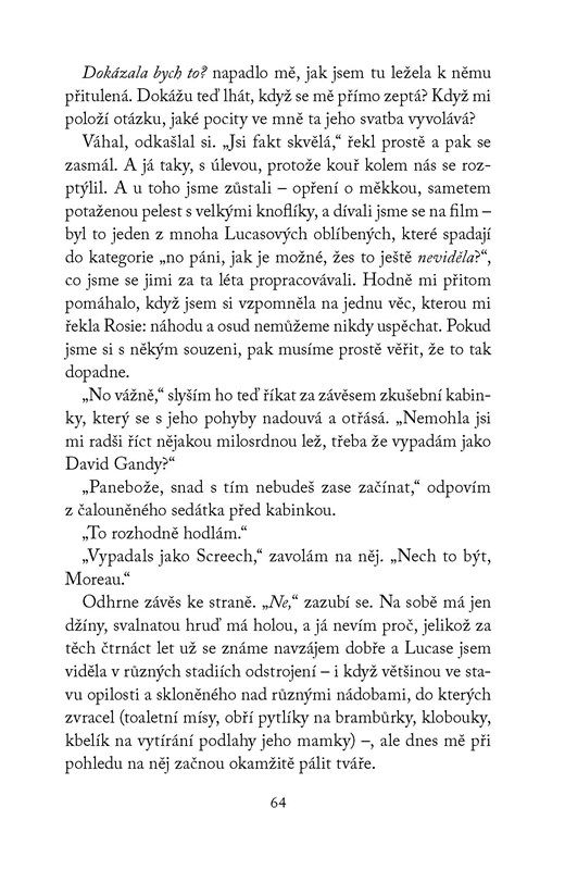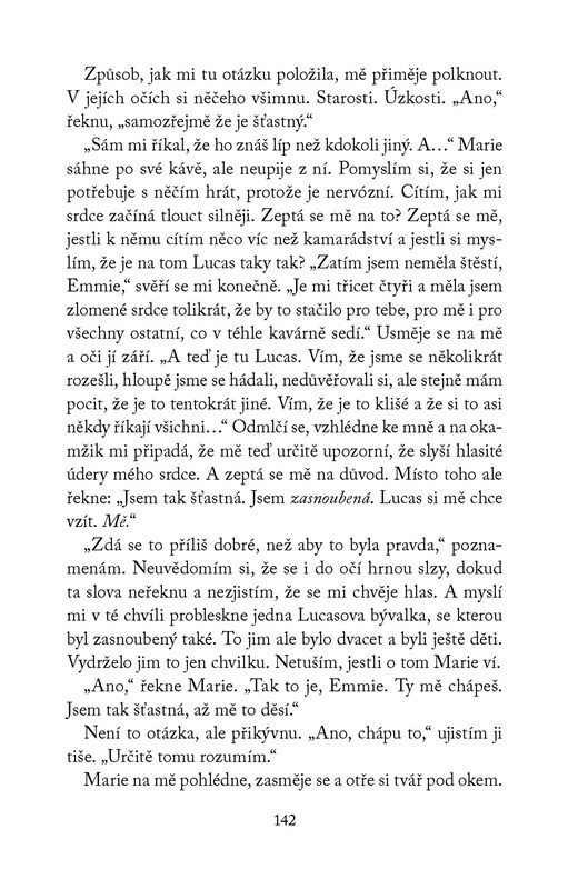 Ve svých šestnácti letech vypustí Emmie do nebe balonek a s ním i lístek, na němž je její adresa a tajemství, kterého se tak zoufale snaží zbavit. O několik týdnů později dostane e-mail od Lucase, nálezce balonku, a začnou si psát. Po letech přátelství se do něj Emmie ale zamiluje a je zdrcená, když od něj místo vyznání dostane pozvánku na svatbu. Na jeho svatbu! Zatímco Emmie pomáhá s přípravou obřadu i oslavy, řeší velké dilema: Má zabránit Lucasovi, aby se oženil, nebo jen nečinně přihlížet tomu, jak si k oltáři vede jinou ženu? Oblíbená britská autorka Lia Louis přichází se svým druhým románem, který potěší všechny příznivkyně romantických komedií.