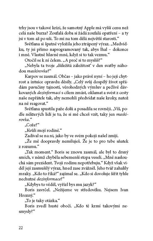 Pro nalezení pravdy musí nejprve vystopovat nebezpečného překupníka zbraní, kterého s Karpovem hledali celé roky. Hledá v labyrintech moskevského podzemí, v egyptských pyramidách a na válkou zdevastované syrsko-turecké hranici, dobře si vědom toho, jak neúprosně čas běží. A také toho, že je jediný člověk na světě, který může uchystanou katastrofu zastavit."